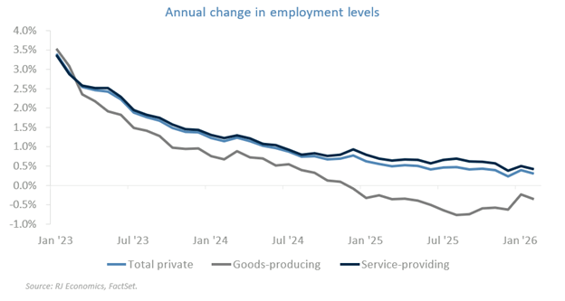 With contradictory signals emerging early in the year, it is essential to step back and view the full mosaic of data rather than cherry picking one number. For example, the control group retail sales series showed solid growth in January, and although February may be weather affected, consumer demand remains healthy, driven more by wealth accumulation than by income gains.